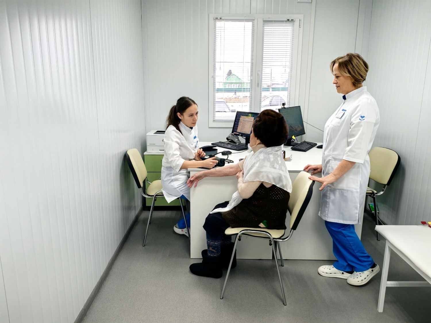 После традиционного перерезания красной ленты гости перешли к осмотру просторных и светлых помещений амбулатории. В здании общей площадью 212 кв. м. предусмотрены отдельные рабочие места для терапевта, стоматолога, педиатра, также есть смотровой, прививочный, процедурный кабинеты, отдельный кабинет приёма температурящих пациентов, палата для дневного пребывания с отдельным санузлом, аптечный пункт, комната ожидания, общий санузел и санузел с доступом для маломобильных граждан, помещение для персонала. Одним словом, здесь созданы все условия и для сотрудников врачебной амбулатории, и для пациентов, общая численность которых составляет почти 3 700 человек, включая 421 ребёнка.